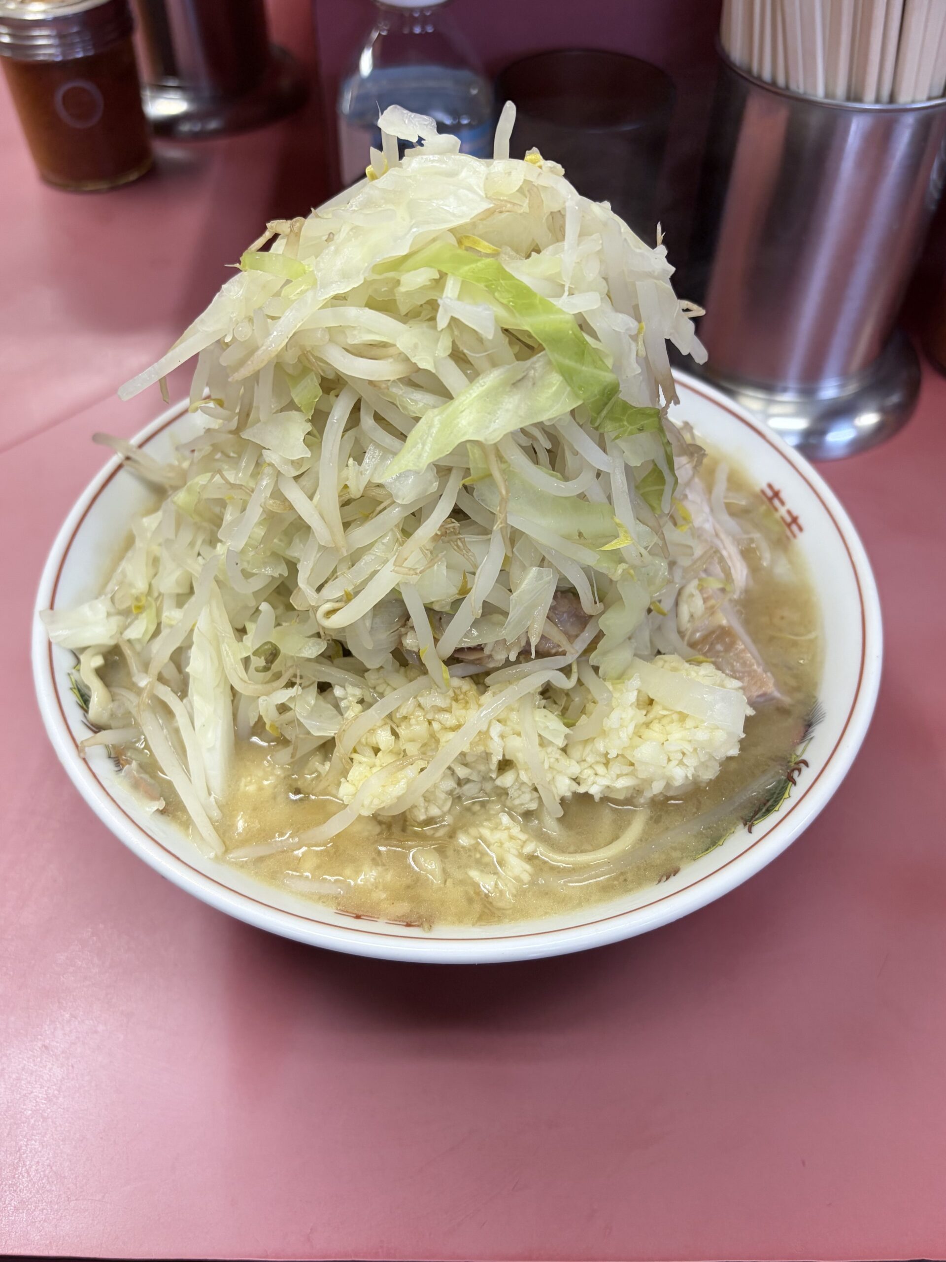 - ヤサイは普通、ニンニクは多め、アブラ多め、カラメあり